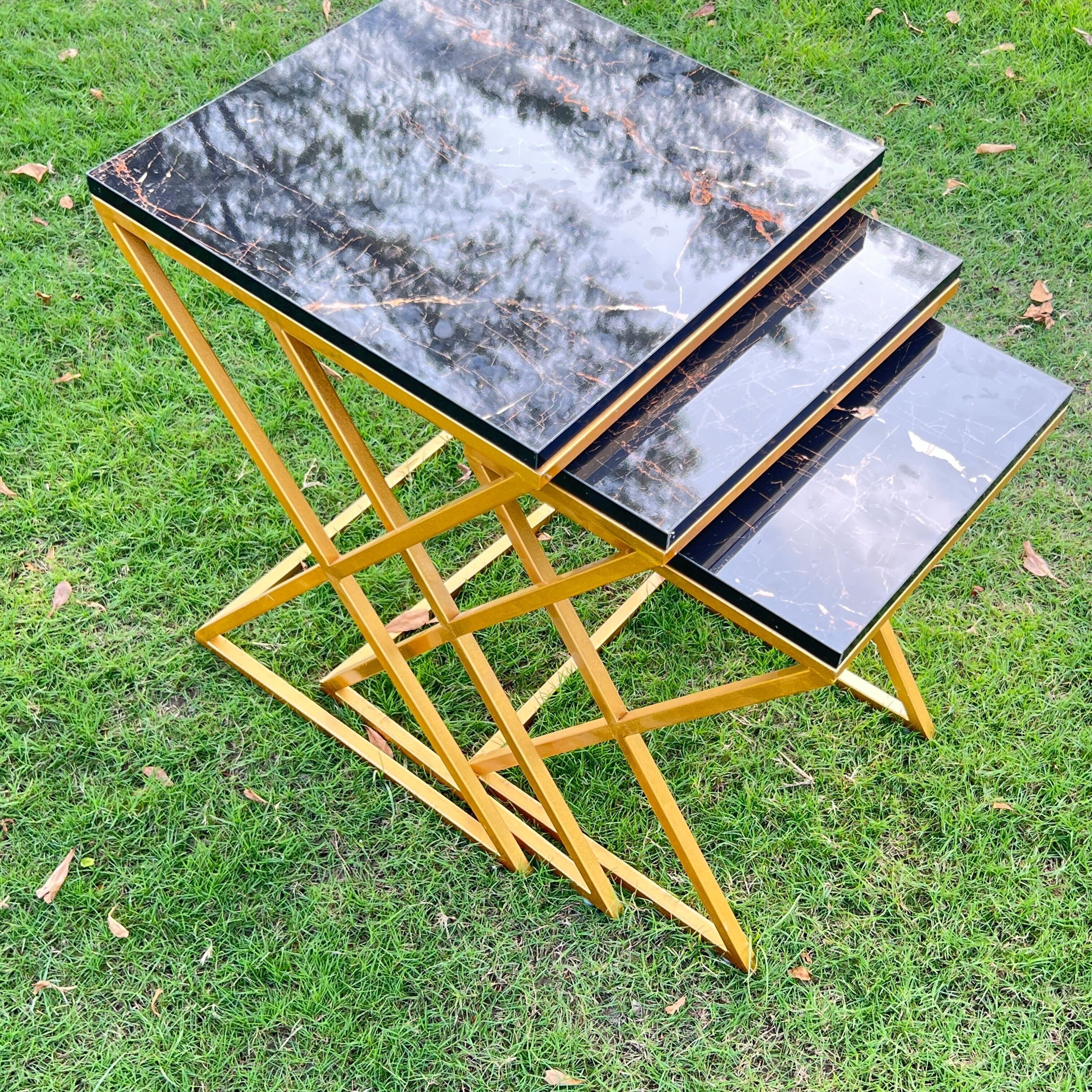 Elevate your living space with this stylish set of nesting tables, perfect for complementing any modern Pakistani interior. Each table features a sleek, high gloss MDF top, offering a sophisticated, polished finish that brings a touch of luxury to your décor. The sturdy metallic frames are coated with advanced Stormic Pro technology, providing exceptional durability and a refined, contemporary look. These versatile nesting tables are ideal for living rooms, bedrooms, or offices, offering functional surfaces for décor display or everyday use while saving space with their smart, stackable design. Crafted for the modern home, these nesting tables are available with nationwide delivery in Pakistan.
